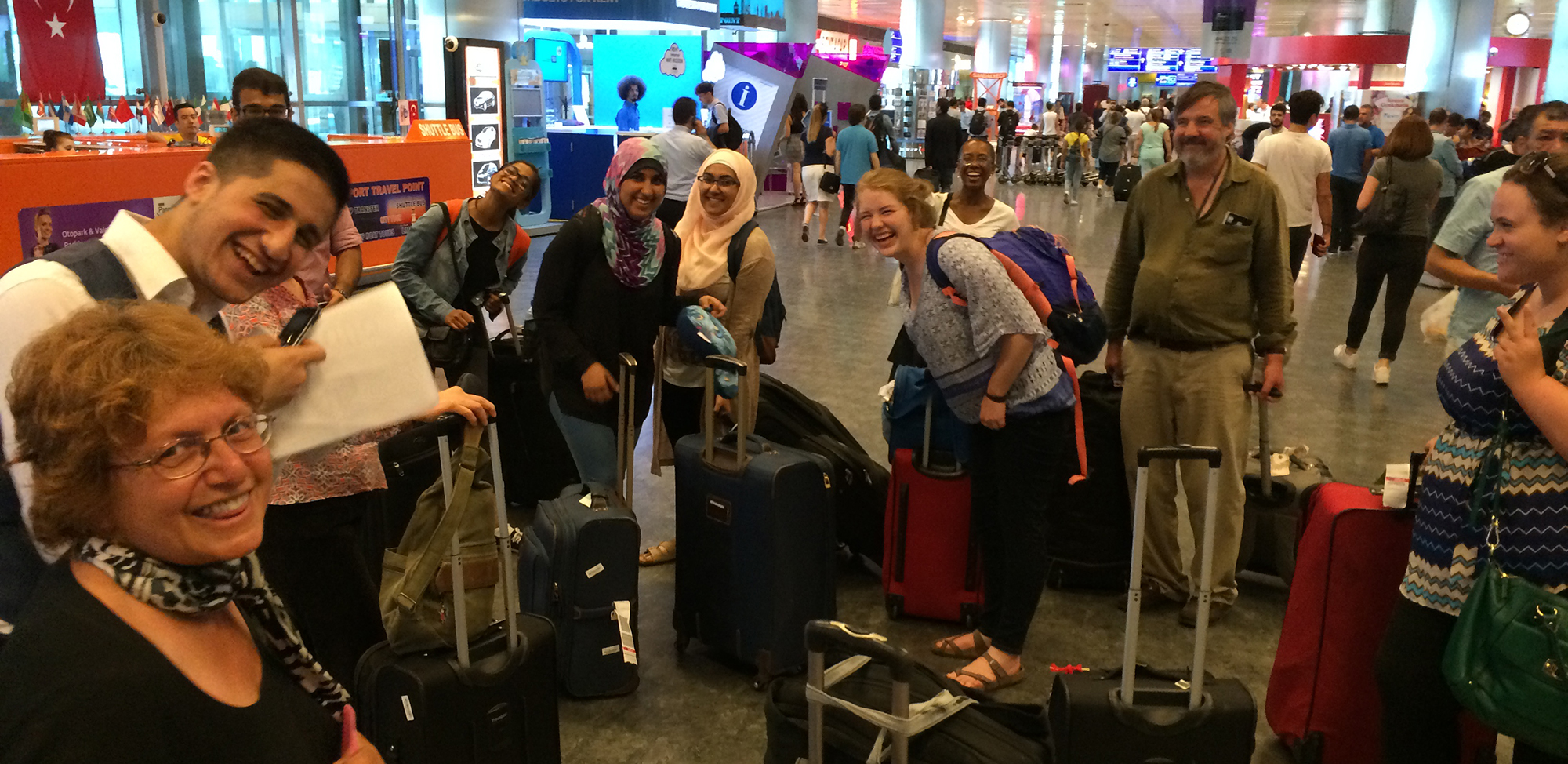 Students and faculty arrive at the Istanbul airport after four days in Venice.